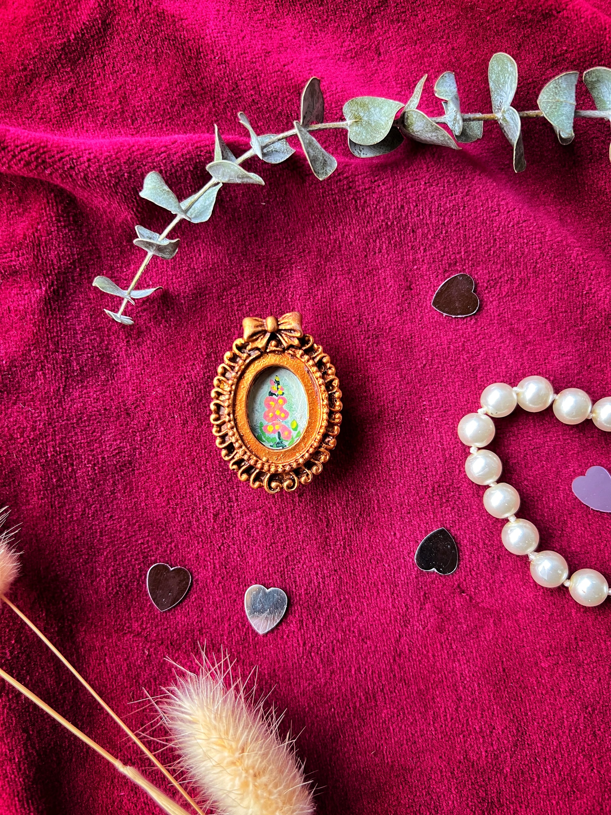 Each magnet holds an original hand-painted floral tucked inside a mini vintage-style frame, like a secret garden captured in time. Delicate petals, soft brushstrokes, and gentle color blooms make every piece one of a kind — no two are ever the same.